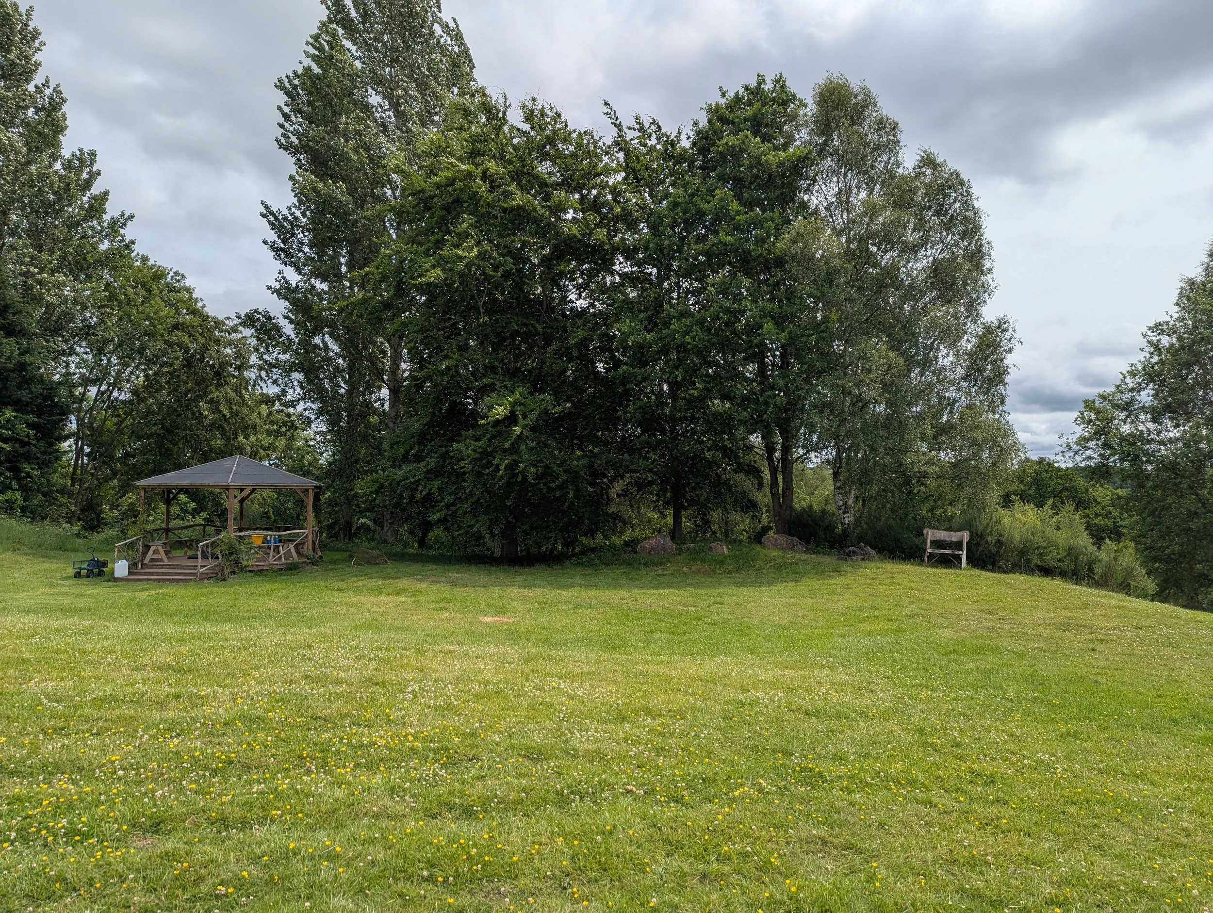 A pergola and meadow, great spot to shelter from the rain or sit and be creative